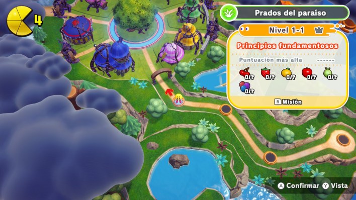 En Nintendo Switch 2, plataforma donde lo probamos, el juego brilla con gráficos en 3D coloridos y estables, recordando por momentos a Super Mario 64 u Odyssey, pero con el inconfundible sello PAC-MAN. Tanto en modo portátil como en sobremesa, el rendimiento es excelente: fluido, sin caídas de frames y con una dirección artística que combina lo retro con lo moderno.